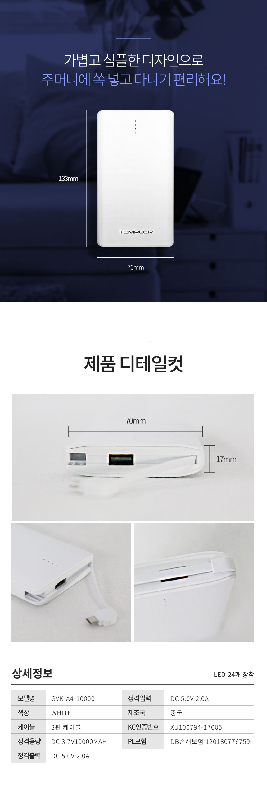 - 외부 활동 시 휴대폰 보조 배터리 연결 사용
